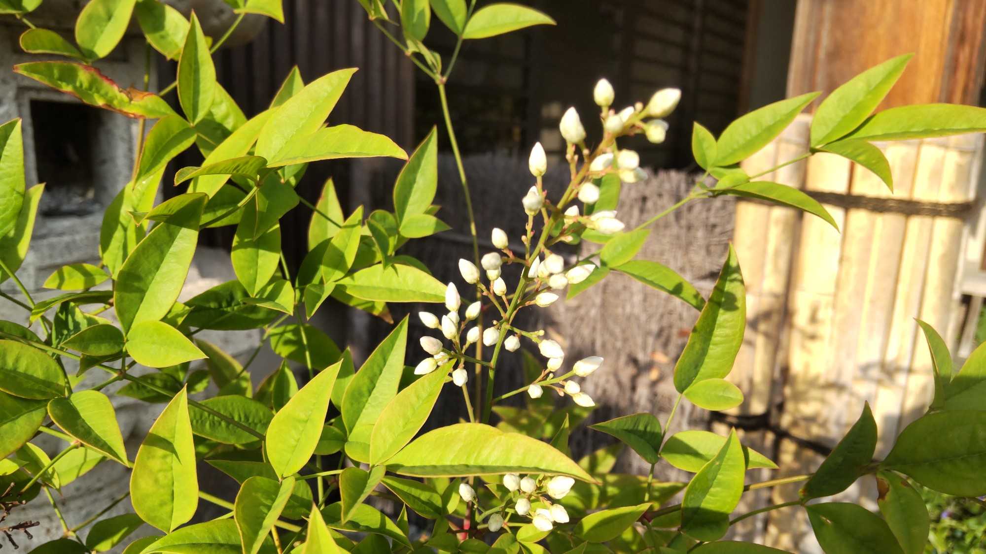 南天の花も咲きました