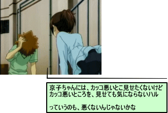 標的96 X(イクス)バーナー階段から転げ落ちたあと「それより、ほんとゴメンナ。」怒鳴って、当たってしまったのはかっこ悪い姿を見られても、かまわないのはそれは・・・「京子ちゃんにも、ありがとう言っといてね。絶対だぞ。」ゼッタイだなんて・・・ 雲雀さんのお相手は、ハルだと思っているので草壁さんの「女性にまめ etc」発言は、了ピンとみなします。ヒバピン派の方ごめんなさい。