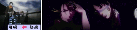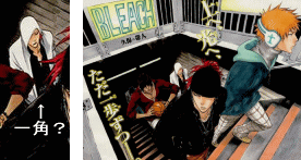 BLEACH 328 The Knuckle Debate射場さんは、一角が卍解できる事を知っていました。元十一番隊で、一角と一緒にいることも多かったので、気付いたんだと思います。でも、他の死神の皆さんは知らないと思います。(狛村隊長は、聞かなかったことにしてくれました。お耳をぴろぴろさせて、Kawaii!!そして、やっぱり心がキレイ)「お前の卍解とじゃまだ、天と地じゃろう一角」 --- そうだよね。朽木白哉さまも言ってた。「死神として頂点を極めた者のみに許される斬魂刀戦術の最終奥義。他と隔絶した超然たる霊圧を生まれ持つ四大貴族と言えど、そこに至ることが出来るのは数世代に一人と言われ、それを発現できた者は、ひとつの例外もなく尸魂界の歴史にその名を刻まれる・・・それが卍解」「卍解の欠点は、霊圧に比例したその巨大さにある。刀剣としての常識を超えた形状と巨大さゆえに、その動きの全てを完全に把握する為には、卍解を会得してなお十余年の鍛錬が必要だ」一角には、まだまだ鍛錬が必要ってことだね。柱を守らなければならないと言う任務を、卍解して戦わなかった為に全う出来なかった一角。この敗戦と射場さんの言葉で一角が吹っ切れて、次からは隠さずに卍解で戦うようになるのかな?一角もまた、 『上へ、光へ、ただ一歩ずつ---。』 昇ってゆくのかな?弓親はまだ気を失ったままです。腐フィルターでは、引き続き修弓なんですが ---大人の事情としては弓親の意識があると、この敗因を基に射場さんが一角を諭して、成長させるお話が描けなかったからじゃないかな・・・とか思ったりしてます。十一番隊第五席・綾瀬川弓親の斬魂刀『瑠璃色孔雀』の秘密は、修兵しか知らないと思います。その修兵も、五席という席次にいる弓親の苦悩は、解らないと思います。修兵は副隊長で、性格も真面目で素直で優しいけど、単純(アホの子)だから。一角にも「あいかわらず、堅ぇーな。ちぃーとは考えてみろよ。解んねぇのかよ。だからお前は腑抜けだってんだよ」って言われてたし。斑目一角VS檜佐木修兵 (腐フィルター:弓親を巡る争い 角弓 VS 修弓)五席の弓親が始解もせずに、副隊長格の修兵・イヅル・一角と共に精鋭に選ばれる為には、乗り越えなきゃならない障害が沢山あったと思うんだ。十一番隊副隊長・草鹿やちるちゃんに言ってもらいました。「五席、五席って煩いな!!!弓親はね、尸魂界最強の十一番隊で、三番目に強い男なんだからね」一角が一歩上に昇ったら、弓親も一歩上に昇らなきゃならなくなるよね。 少し後で、一緒に戦う為に・・・「難儀な話さ、厭になるだろう。いつだって描くことより破ることの方がたやすくて、ほどくことより結ぶことの方がずっと難しいんだ」