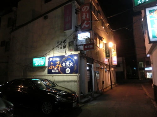 先週の土曜日のはなしきょうは、ちゃんとしたブロガーのもーりーさんと、かぽぽさんで駅裏探検に行ってきましたおじさん自宅から歩いて出発。 さすがに日が長くなってきたようだ途中にパーティードレス(お水のお姉さん用ドレス)専門の店があったここはよく車で通るのだが、ショーウインドウのドレスも春の装いに変わったようだ店の中にも色っぽいドレスがいっぱい見えるが、あまり覗きこんだら怪しまれそう・・10分ほどで、最初の目的地、ホルモン焼きの「百萬里」に到着おじさんここに来るのは20数年ぶりかここの名物は湯通ししたホルモンだ昔はアチコチの店でも湯通しホルモンがあったような気がするが、最近はあまり見かけないかな細い中通路があるカウンター。 全体にレトロでなつかしい雰囲気だ炭火で焼くホルモンはかなり煙が立ち込めるが、とてもウマイ!昔はゴードーの焼酎を、もっきりで飲んでいる人が多かったような記憶があるがおじさんも焼酎にしてみるけっこうお客さんで込んできた!イメージではタオルを首に巻いた作業服姿のオッサンが焼酎片手に・・みたいな雰囲気だが、なんと全員かなり若い男たちばかり! しかもみんな常連のようだ!ホルモン以外にも肉はあるのだが、きょうのお客さん全員がホルモンをたのんでいる!写真では分かりにくいが、天井は煤けて真っ黒だ次に行かなければならないので、3人前のホルモンを食べて店を後になかなか味のある外観。 若者で込んでいたのでなんだか頼もしい気持ちになるおじさんがまだ若かったころは、活気があった鉄北センターいまは数軒がひっそりと営業をしているだけで、かなり怪しい雰囲気だ。当時おじさんはまだ若く、別の意味でこの辺は怖くて入れなかった昔は映画館の(成人映画の)2階にあった「嵐山」へ行ってみる昔の店時代には、おじさんけっこうかよったんです。 まだ未成年だったけど・・ここでかぽぽさんと合流する今は刺身なども置いてあるが、焼き鳥が一応専門なので、さっそく何本か焼いてもらういまは息子さんがやっているらしいが、先代の時代の焼き鳥と樽酒を焼き徳利で燗をしていた頃が懐かしい。 当時は1000円もあればお釣りがきたような??そしてきょうのメインの目的「炉ばた と と」へ移動するここはかなりの人気店で、おじさん何回か来たけどいつも満席で入れなかった店だ!となりは息子さんがやっているダイニングキッチン祐っ人(すけっと) 中でつながっているとても清潔な店内 やさしそうな夫婦2人で切り盛りしているようだおじさんは日本酒にしてみるここの名物らしいカブリ(ロースの一部)を焼いてもらうやはり炭で焼くとウマそうだ適度に歯ごたえのあるカブリはとても味わい深い塩とタレの両方焼いてもらったが、写真のタレが絶妙な味でウマかった!それにしても3人共ブログをやっているので、食べる前にみんなでパシャパシャやるのは何だか変な光景かも・・牛スジ煮込み アッサリ味でウマイ!次々とお客さんがやってきて一杯になってきた!やはりウマくて感じのいいお店は、こんなディープな場所でもはやるんですね!おじさんでもこの辺りを一人で歩くと、ちょっと不安な気持ちになりますそれでも、こちら側はまだ数軒がやっているが、もう一つの通りは2軒くらいしかやっていなくてかなり怪しい雰囲気だったような・・きょうは赤横の「花」の一周年祭りおじさん御一行、顔を出さないわけにはいかないさっきの通りよりはるかに赤横の方が明るい!ママさん頑張りました! 置くところが無いくらいにたくさんの料理が並ぶ片っ端から味見したいが、すでにお腹がいっぱい・・少しだけ食べて諦める・・時間がまだ早いので、かぽぽさんと某スナックへ行ってみたなんと、こよなく氏がいるではありませんか!(おじさんの隣の人) いよいよ今月で釧路を去ってしまうらしい・・何曲か歌った後、再び赤横へ戻り、18日にオープンしたイケメン串揚げの「のどか」へ行ってみるここはご存じの通り、よしのの真向かいにあります。 ここ、中が丸見えなので、見つかって怒られないように(笑)よしのママにも声をかけて呼んでみた・・オォ~ッ ホントにイケメンの若者です!串揚げ屋さん特有の口をサッパリさせるためのキャベツ食べ放題だが、ソースをちょっと付けて食べるとサッパリした、いいつまみになる残念ながらお腹一杯&メタボなので、たのんだのはこれだけかぽぽさんが写真を撮ってる!小ぶりな串だが、一本100円だったかな。 なかなかウマイです!ご覧のようにガラスが素通しで丸見え!赤横も若い人の店が増えたし、女性客も(けっこう一人客も)増えたようだし楽しくていい感じになってきたかなイケメン串揚げ屋さんもイケイケで頑張ってほしいものだおじさん、ちょっと本業が込んできて、こんなことやってる場合じゃなくなってきたかな・・やはり連休は暗い顔でお仕事のようです・・
