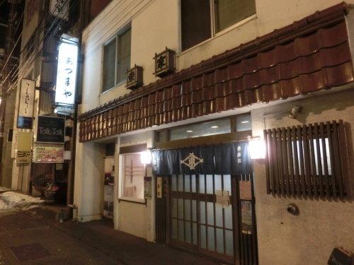 久しぶりにきょうは風が穏やかだゆっくりとしたスピードで出航していく巡視船えりも(20日)しばらくの間は穏やかな天気が続くらしい一昨日のはなしやはり4日間も街に出ないと落ち着かない・・おじさん、ここのところ、ちょっと仕事が詰まっているので、「きょうは絶対に早く帰るぞ!」という条件で、街に出てみようか(無理に決まってる・・)久しぶりに「ふみちゃん」へ寄ってみた右側に赤横がある 滑って転ばないように気を付けなきゃ寒さのために、店に入ったとたんにメガネが曇って何も見えなくなるちょっと迷ったが、やはり寒くても最初はビールきょうは大きな鍋でおでんをやっていたので、少し食べてみた上品な味付けで、なかなかいい感じだ初孫の生原酒 魔斬(まきり)がウマかったこの後、別の酒を一杯やって店を後にそういえばここ2週間ほど花に行っていなかったな顔を出してみる高知県は有光酒造の安芸虎 純米吟醸 たれくち これはウマイ良いお酒だ!しっかりしているが、さらりとキレもよくて、とても味わい深い(ウマく表現できない・・)ここの蔵ではいいお酒を造るために、麹や醪にクラシック音楽を聞かせながら醸造しているらしい!きょうのお通しはいつもの3点盛りではなくて、別皿だった左の牛スジ煮込みがとてもウマかった!右は長イモの千切りに酢醤油 トンブリらしきものが、かかっているホタテや魚、野菜がいろいろ入った汁日本酒で、そろそろ参ってきた胃が生き返るようだ!トイレにむかう小路 雪の捨て場がないので両側に積み上げられている基本的に自分たちで雪掻きするらしいが、なかなか大変そうだ昔は酔っぱらった不埒なオッサンが、ときどき雪の壁に黄色のシミを付けたりしたこともあったようだ・・エッ?! ちゃんとノレンが出ているし、提灯にも灯りが点いている!ちゃんと営業しているよしのを見るのは、かなり久しぶりのような気がするが・・但しこの時、中に本人はおらず・・戸を開けたら、向かいの店から出てきたが・・新潟のお酒がイッパイ!まずは吉乃川をやってみるキング氏が持ってきたらしい出羽桜がウマイ右のコンブ素麺は昆布100パーセントで出来ている! けっこうイケますこれもいいお酒だ、ガバガバいってしまう・・なんだかスゴイことになってる茹で玉子少々弱り気味のおじさん、すでにかなり酔っぱらってきてしまった・・どうにも気になるよの介にも顔を出してみようかきょうも、ほっとけない応援隊らしき美人女性が一人、まったりとお酒を楽しんでいた獺祭も飲んでみるおじさんかなりアブナクなってきた・・そろそろ帰らなければこの後、自動的にいつもの某スナックへ体が向かったようだこんどはビールを飲んでいるここに来るまでに日本酒をどんだけ飲んだだろうか~・・7~8合くらいかなぁ~??おじさん、ビール飲んだのは覚えていますでもこの後は、まったく記憶がございません・・デコ八親分が来ているから来る?ってよしのからTELがあったような気もするし?・・赤横に再び戻ったような気もするけど・・デコ八さんに会ったのかなぁ~??写真だけが頼りの世界・・〆は日の出寿司によったらしいせっかくの毛ガニの握りだが・・ウマイはずだけど、店に来たこと自体ほとんど覚えていない・・モッタイナイことだ・・(写真を見ていると、多少はよみがえってくるが・・)ここに来て、お茶をたのむわけがあるはずもなく・・きっとビールか日本酒を飲んだんだろうなぁアララ・・またやっちゃったようだ記憶のある時に食べたかった・・何が忙しいから早く帰るだ・・いつもの事とはいえ、かなり自己嫌悪やはり日本酒はアブナイ(日本酒のせいにするな)それにしても、タクシーに乗ってちゃんと帰っているのが自分でも不思議だ・・