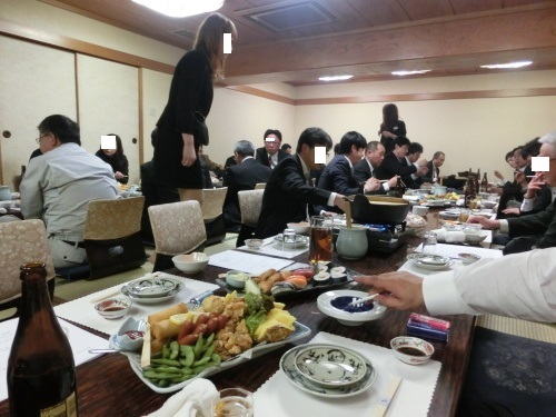 きょうはお得意さんの送別会に参加プリンスホテルでの開催だったが、間違ってもコンパニオンなどが出てくる雰囲気がないちょっと硬めの雰囲気だ・・開始早々、おじさんが日本酒好きなのを知っている人が日本酒を持ってくるワインも含め酒はいろいろあったのだが、なぜか日本酒はこれ一種類しか置いていない・・ 空きっ腹にこれではアブナイ一気に5人ほど転勤になるので、きょうは合同送別会おじさん、一応水割りもたのんだりして、日本酒防衛作戦をたててみたのだが・・みんな、何言ってんの、いいからいいからって日本酒ばかり注がれる・・きょうもアブナイ予感が本当はおじさんがアチコチ注いで回らなければならないのだが、注いでもらう方に専念デザートのアイスがサッパリとウマかったそれにしてもかなり搾りたてを飲んでしまったようだ・・宴会はキッチリ2時間、9時にやっと終わるこの後、会場にいたお客さんと二人で、花に行ってみたオッ! ディープな常連さん達が一杯やっているぞここでも飲んでしまった・・生酒高知県西岡酒造の久礼(くれ)手詰直汲み特別純米 無濾過生原酒これもアブナイ(良い)お酒です 甘い香りとフレッシュな感じで飲みやすいでも度数が17度と高めなので、ガブガブ飲むことは避けたい次によの介に行ってみようかと思ったが、きょうは女性応援隊がいないようなので、後で来るからと、よしのへ行ってみた右奥がよしのだが、すでに提灯の灯りは消されている・・10時を過ぎてから知らないお客さんが入ってくるのを避けるためとのことらしい(本当はやる気の問題か・・)ちなみによしの隣のつくしの跡に近々新規の店がオープンするとのことださっきからの生酒の影響が出てきたおじさん・・すでにこのあたりで出来上がっている・・菜の花が春を感じさせてウマかったが、何を飲んだっけ?きょうも某スナックへお客さんも危なくなってきたようだ・・宮崎夫のオモチャで遊んでいるあしたも仕事なので、この辺で帰ろう・・と思ったのだが、やっぱり行ってしまったようだ(一応覚えています)右の魚、何だったっけな?? よく焼き魚で食べる魚だったと思うが?大将が進めるので、さっそく握ってもらう脂が乗ってなかなかウマイのだが、何だったっけ? どうにも気になる・・オッ!さっきの赤横仲間もやって来たきょうの〆は鉄火巻 おじさんビールを飲んでいるようだ大将が、これ食べてみなって出してくれたサツマイモ!が、酔っ払いには意外にウマかった!けっきょく12時をなかり過ぎてしまう・・いやぁ~さすがに生酒はあとから効いてきます・・(次の日も・・)