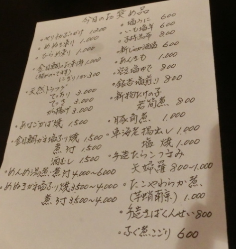きょうはおじさんのところの会社関係の集まり真面目な会議が終って宴会が始まる総勢50名ほどの宴会だきょうのメインは寄せ鍋おじさん本当は日本酒を飲みたいが、壊れると困るので最後まで生ビールでイッテみることにアレッ このオッサン、彼女のお尻に手がいってる?恒例のビンゴ大会 一等賞の配当金は何と2万円!コンパニオンも含めて3人が同時にビンゴ! ジャンケンにも、かなり力が入る2回やったけど、おじさんカスリもしない・・宴会が終って、幹事だけで二次会をやることに釧路で一番立派な八千代本店へ行ってみる刺身はヤリイカ 儚いくらいに柔らかいやはりここでは日本酒でイッテみたいさすが八千代 いい感じのネタが並んでいるでも、立派なシャコは冷凍ものとのことだったコハダもウマイ!ちょっとずつアレコレ食べたいおじさんに合わせて、少しずつ切ってくれるのがなかなかイイ握りも食べないと タコとコハダを一貫ずつ握ってもらうタコが味わい深い!アナゴは久しぶりに食べる気がするかなこの後、炙ったアナゴも握ってもらう〆はガッチリワサビを効かせたカンピョウ巻きで店を後にちょっとだけ赤横に顔を出してみるよしのは、ちょうどお客さんがひけた後らしく誰もいなかったが、きょうはちゃんと提灯が灯っていた!本日の料理 ちょっとつまんで日本酒を一杯だけで店を後に某スナックで、さっきの幹事たちと再び合流なにやらアフロを被って、歌いまくっているようだおじさん、きょうも飲み会があるので11時前に店を出ることに真面目に帰ろうかと思ったが、先日の日の出寿司で食べた魚の名前が気になる・・ちょっと聞きに行ってみようか・・こちらでは珍しいサヨリがあったので握ってもらうすでにお腹はイッパイだが、これはウマイ!赤身 ほのかな酸味が爽やかでいい感じださっき八千代でも食べたが、店によってそれぞれ個性があるようだもちろん、どちらもウマイ〆のカンピョウ巻きと鉄火巻さすがにもう入らない・・大将がこれどう?って出してくれた煮物サトイモとずいき(サトイモの茎=芋がら)の煮物酔っぱらう前にこれをヌル燗でやってみたいかなきょうはそれほど日本酒を飲んでいなかったので、記憶は全部ありますでも、さすがに食べ過ぎ・・クルシイ・・・・で、肝心な目的先日食べた寿司ネタの名前えぼだい(イボダイ?)とのことでした えぼだいの全体像は見たことないけど、イメージとして、もっとずんぐりした魚かと思ったが??一般的に干物のイメージがあり、普段あまり刺身で登場しないと思うが、鮮度がよければ刺身もうまいとのことだアララ・・けっきょく11時半を過ぎてしまった・・きょうは、またまたお客さんの送別会・・日本酒攻めの予感がするが・・おじさん、モツかなぁ~あしたも日曜日も、かなり脂っこい仕事が詰まっているんだよなぁ~・・