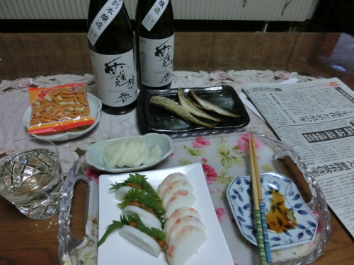 市内は雨だったが、阿寒の山はすっかり雪景色だやはり噴煙がいつもより大きく見えるようなきがするがきょうは札幌からお客さんが来たので、少し奮発して久しぶりの勢喜に行ってみたまずはビールでカンパイここは魚系に定評のあるお店だ刺身盛り合わせ 赤いのはクジラ文句なく新鮮でウマいが、どれも切り方がかなり大きくて2~3切れでお腹がイッパイになりそうだ・・写真では実感がわかないが、ボタンエビなんかビックリするほど巨大だった!これはもの凄く濃厚でウマかった!さっそく日本酒に切り替える何とも儚い感じだが、とても繊細で品のイイうまさのタチポン久しぶりにこれだけウマイタチポンに当った気がするかな頭が黒焦げになってしまったが、みっちりと卵を抱えた旬のシシャモ これも最高にウマかったおじさん的には多少脂が乗っている、このくらいが好みかなカボスを少し掛けて食べると、一瞬まるで子持ちのアユみたいな風味を感じるような気がする!ウマそうな煮魚などが載っているカウンター右のババカレイも食べたかったが、ちょっとデカすぎる!粗相のないように、日本酒の後は焼酎にしたのだが、再び日本酒に切り替える・・スナックへ行く前に、赤横へ寄ってみたよしのでおでんをツマミに軽くやってみようかここにもいろんな日本酒が置いてあったので、次々味見をしてみたこれで完全に出来上がる・・(日本酒はおじさんだけ)10時過ぎ、マツコママの店に移動なぜかよしのママもいるようだが?やはり某スナックにも行ったらしい毎回記憶喪失では、どうしようもない・・お客さんと、どこで別れたのだろうか?・・きょう白糠へ行く途中、海岸のすぐ近くでシシャモ漁をやっている船がいた網を引っ張りながら、行ったり来たりを繰り返しているようだすれ違うシシャモ漁船 後ろに網を引っ張るロープが見える全体で十数隻の漁船が思い思いの場所で漁をしていた天候などにもよるのだろうが、毎日漁をやっているわけではないようだ今年の漁模様はどうなのだろうか?そういえば、久しぶりに太陽の光を見たような気がするが・・ことしは寒い冬なのだろうか?