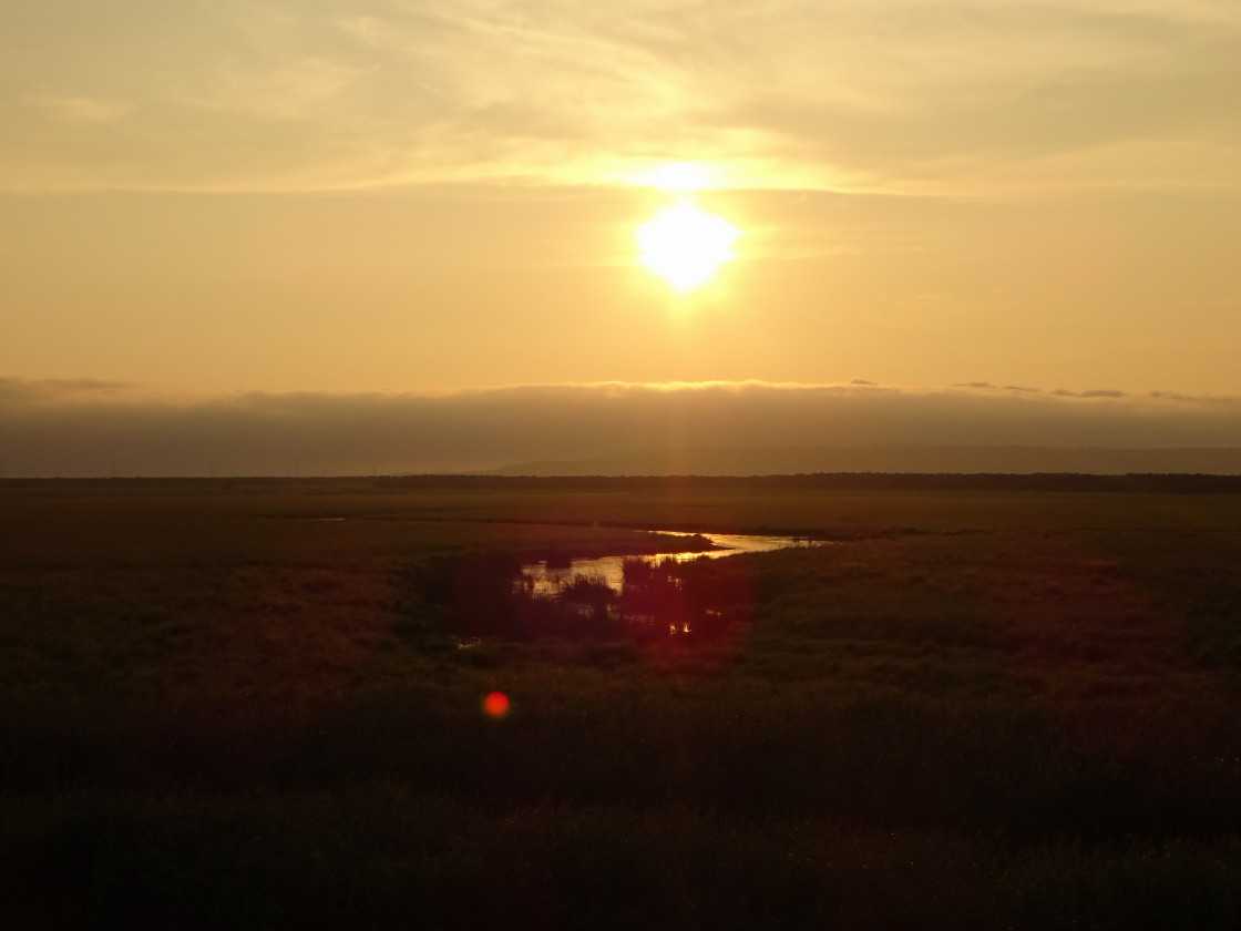 夕日がちょうど、港に沈む季節になってきたようだこれは土曜日の夕方幣舞橋には、たくさんのカメラマンが集まっているようだ釧路の夕日は、世界3大夕日と言われているらしい世界中の夕日を見た船乗りたちの、口コミで広がったらしいが、他はちなみにマニラとバリ島の夕日らしいこれも土曜日巻き網船団が戻ってきたようだこの船は何やら修理をしているようだったが、おじさん的にはテントにつるされた魚が気になる自家製イワシの一夜干しってところか乗組員の、今晩の酒の肴になるのだろうかついでに水産センターにある、釧ちゃん食堂にいってみたまだ11時ちょっとだが、地方ナンバーの車も含めて、けっこうお客さんが多いようだイワシフライ定食にしてみた 890円大きめのイワシフライに、ポテサラと塩辛が付いているタルタルソースも付いているが、おじさんはソース派ザクッと硬めの衣を齧ると、中はかなり柔らかくてふんわりした食感脂ものっていて、うま味がジュワッと溢れてくるこれ、ビールにも合いそうだこれは昨日ホントは思い切り自分を追い込みたいところだが、ワクチンのすぐ後は激しい運動はアブナイらしいとりあえず、いつもの釧路川右岸を、ゆっくり走ってみようかきょうも秋の虫が盛んに鳴いているが、コオロギも鳴いているようだ何を間違ったものか、車の温度計では27度もあるようだが!でも、かなり強い風が吹いているので、それほど暑くは感じられないかかなり以前に、湿原を牧草地にでもしようとしたのだろうか?こんな直線の排水溝みたいなものが、湿原のところどころにみられるゆっくり走ったり歩いたり、小一時間ほど来たあたり手前の川は、幌呂川釧路川本流は、遥か湿原の向こう側 遠くに岩保木水門が見える左が旧水門 背の高いのが、新しい水門もう少し進んでみるこの辺りが湿原が一番広く見えるあたりだろういかにも湿原の最深部って感じか長閑な景色に見えるが、帽子が飛んでいきそうなほど風が強い・・真っすぐ進めば温根内だが、もう半分くらいは来ただろうか?ひどく疲れたので、この辺で引き返すことにそれにしても、帰り道の長いこと・・どこまでも平坦な直線は、少しくらい歩いてもまったく市街地が近付いて見えないし煙の出ていない日本製紙・・帰り道はまともに向かい風だったので、ほとんど走ることができなかった出発地点まで2時間近くもかかってしまうこれは湿原の前の腹ごしらえ久しぶりにラーメンの老舗、銀水へ行ってみた醤油ワンタンメンにしてみた930円特別凝ったラーメンではないが、アッサリ系で飽きのこない正統派ラーメンって感じだペロンとしたワンタンには、けっこうしっかりとした挽肉がタップリなのもウレシイおじさん的には、やはりアッサリ味細麺の、釧路ラーメンがイイきょうもほとんどスープを飲み干してしまったそろそろ今日で終わりだと思うけど、きょうもかなり暑かった寒くなる前に、お店でジョッキをグイッとやってみたいものだが・・