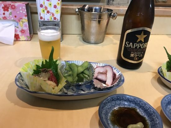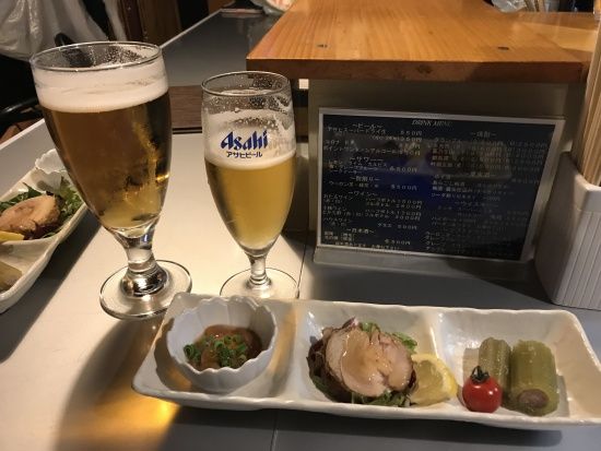 これはハズレかと思ったが、気さくなママさんだし、隣の市場から仕入れたのかお通しのマグロやツブの刺身がバツグンだった!