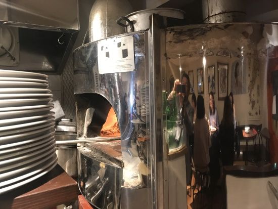 スマホをもっているおじさんが写っているが、これは薪で焼くピザ窯