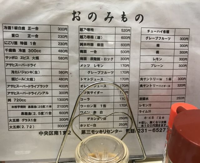 この建物1階と2階合わせて数軒入っているが、どうも雰囲気が似ていると思ったら、タヌキスクエアや二条市場隣の、おじさんがよく行く建物と同じ経営らしい