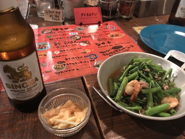 空芯菜の炒め物も、ナンプラーが効いてかなり本格的でウマい