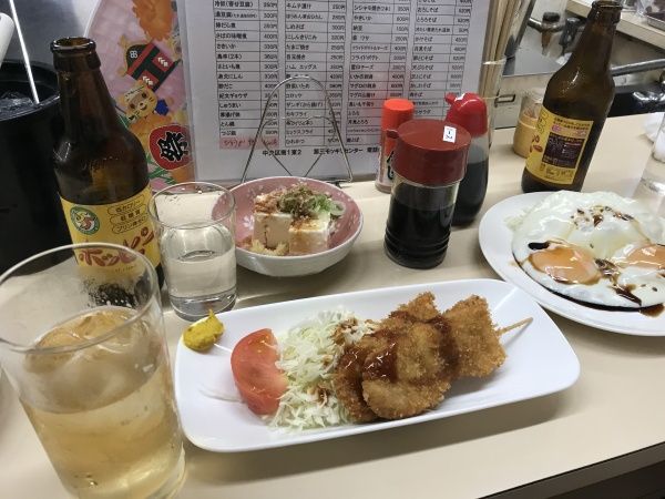 ホッピーをもらい、定番の料理を少しだけたのんでみる