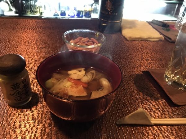 お通しは、ゲンゲン汁  酔っぱらいには、こんなのがアリガタイ