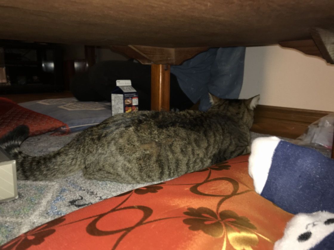 なんだかさっきから、テーブルのしたでモソモソ何かが動いているような?