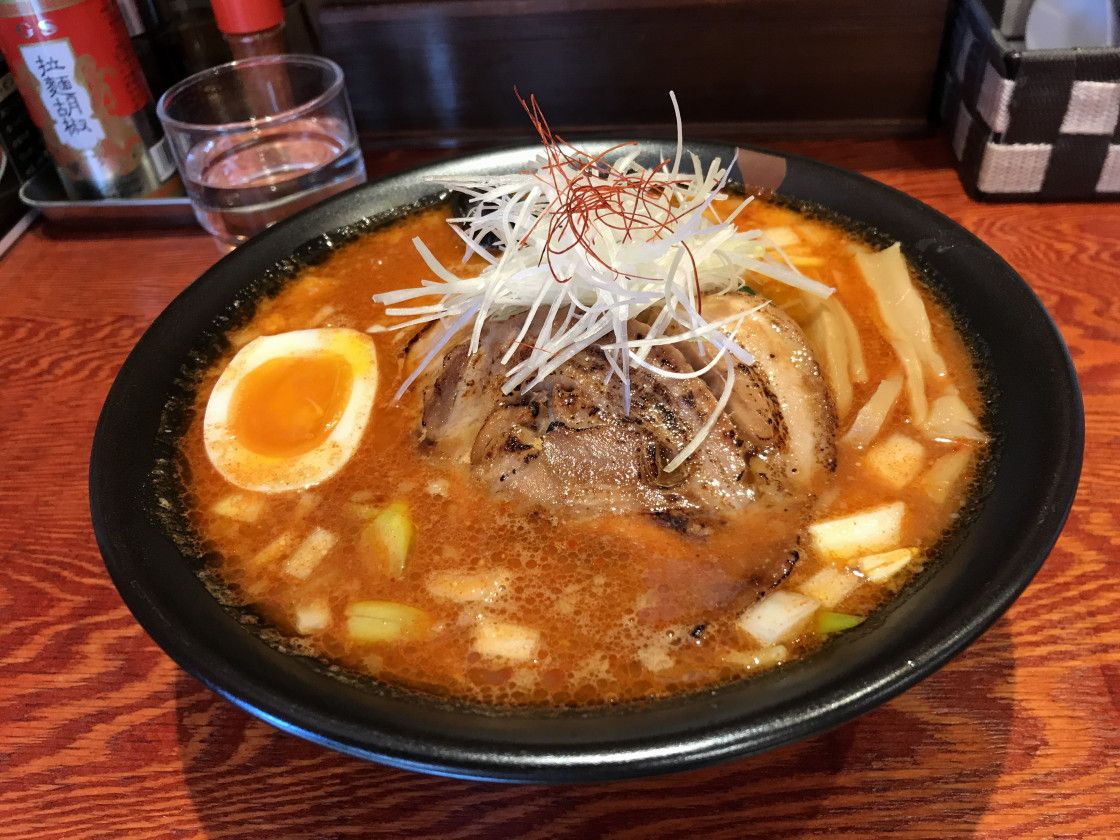 はちべえ辛味噌ラーメンにしてみた900円  この上に激辛もあるが、キケンなのでやめておく