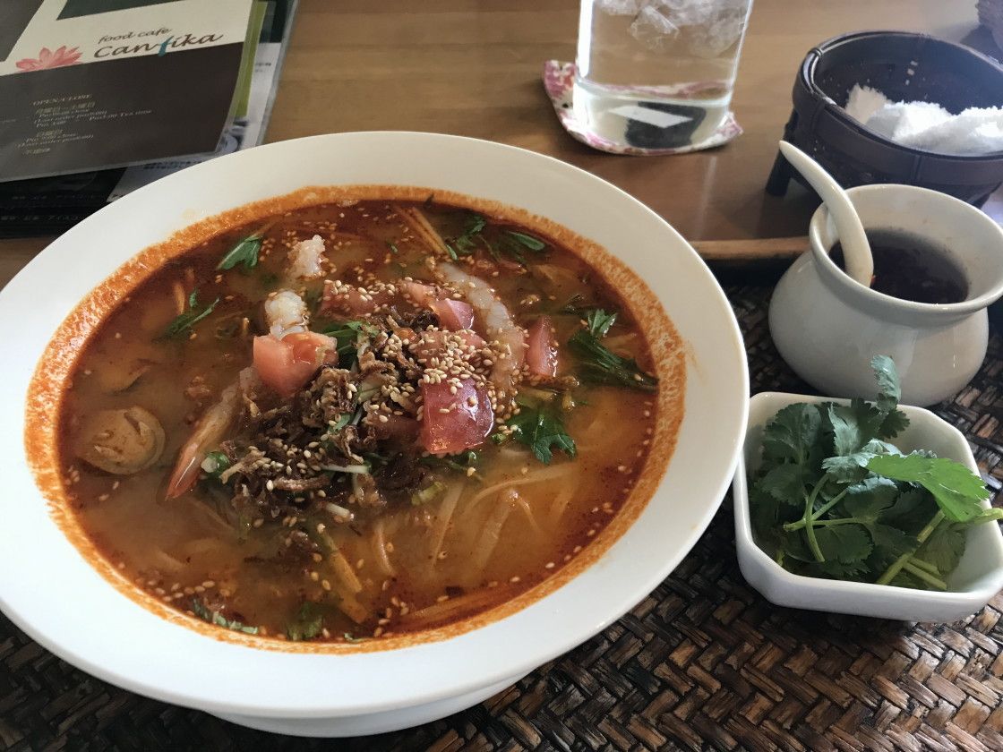 まぁ、トムヤムクンにフォーを入れたようなものだが、そのままでもかなり辛くて酸っぱいです