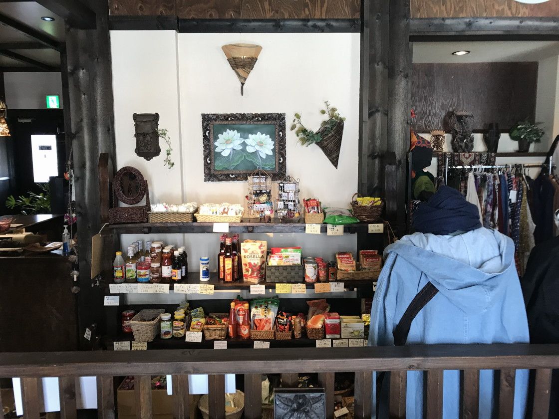 ナンプラーなどのスパイスや食材、南国の雑貨なども売っている