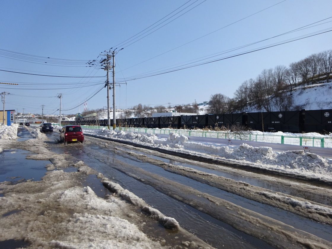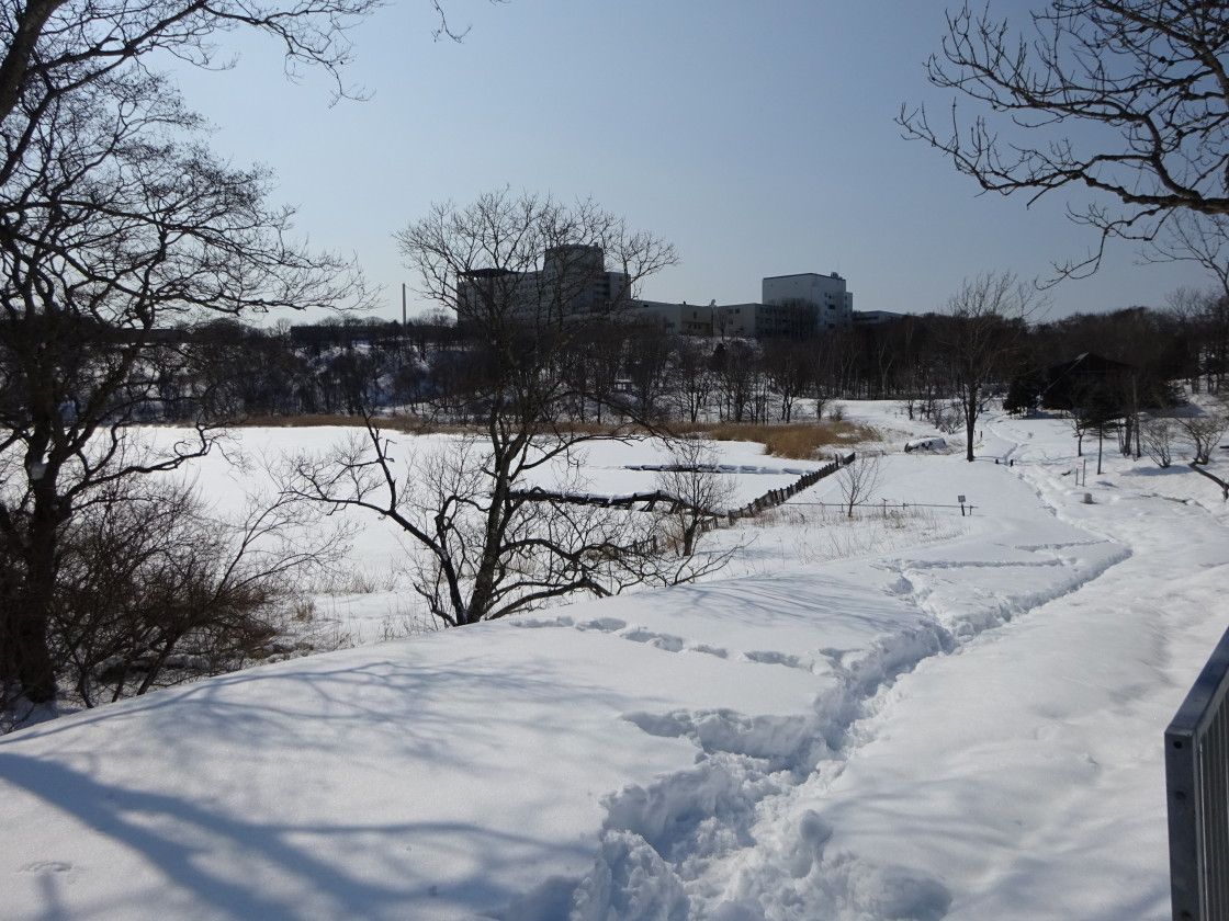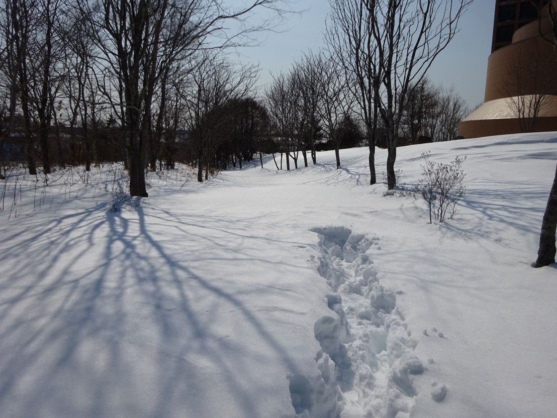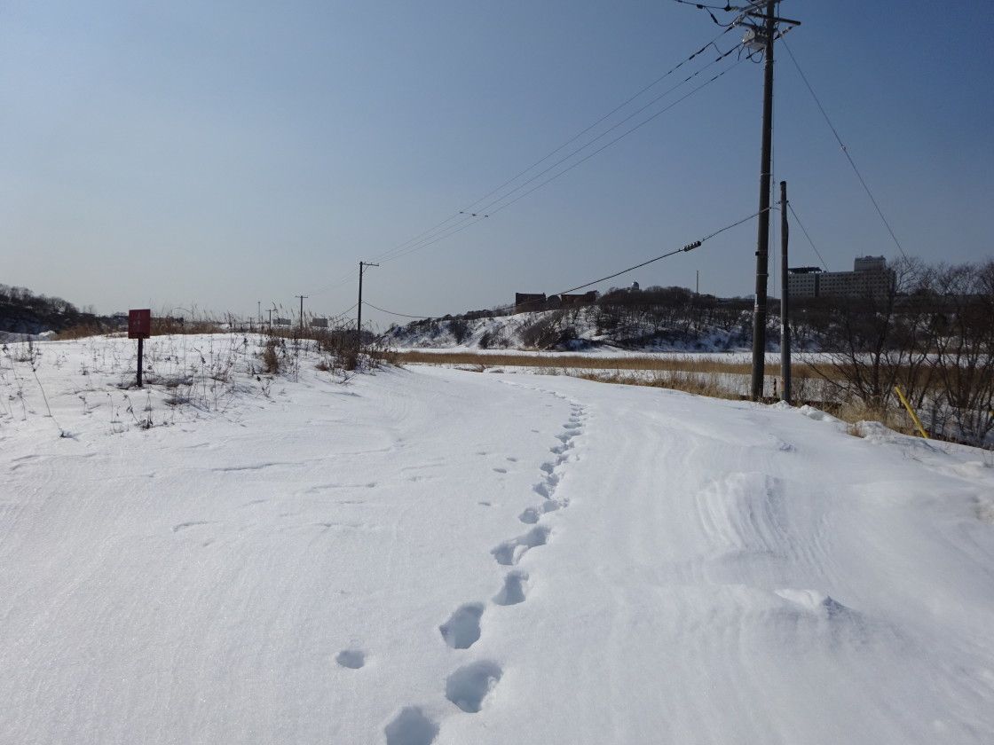 途中から除雪された歩道を歩くが、気温が高いのでザクザクベシャベシャで歩きにくい