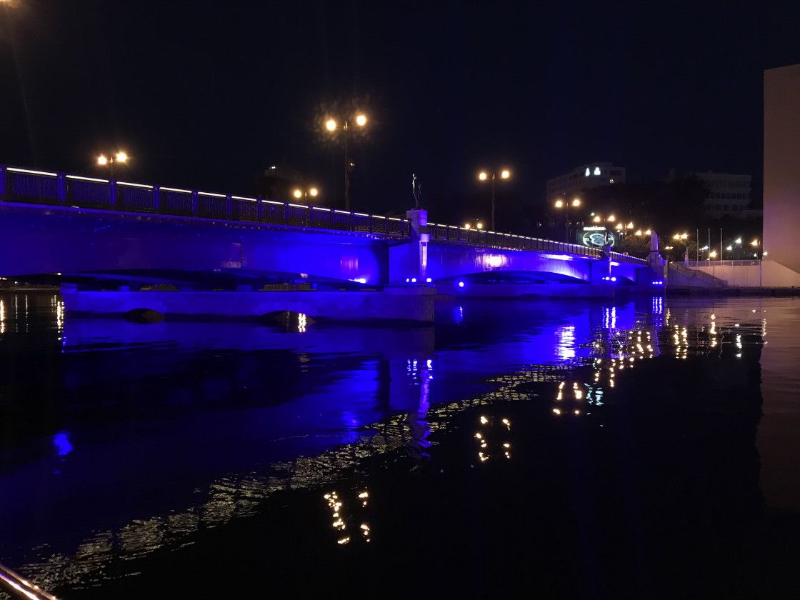 無風状態なので、ブルーライトが鮮やかに反射している(実際はもっときれいです)