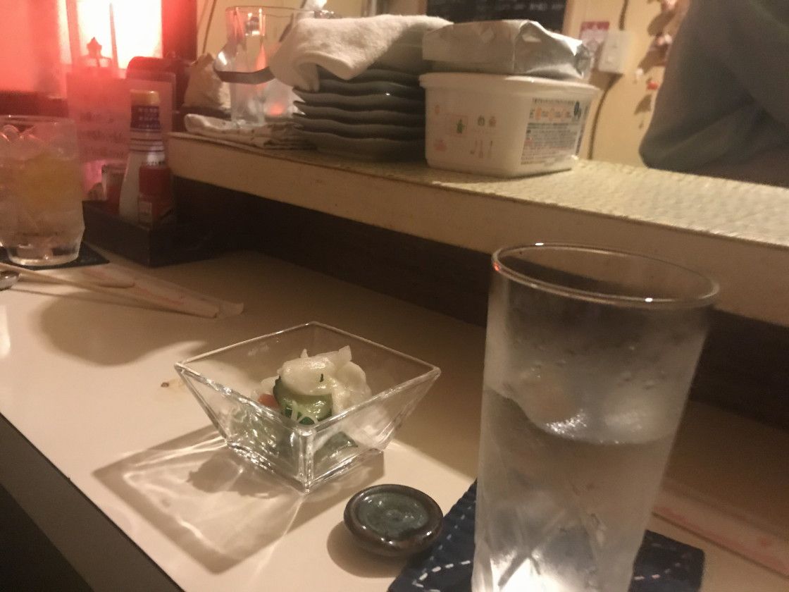 お腹が一杯なので、アッサリ系をたのんで焼酎でイってみる