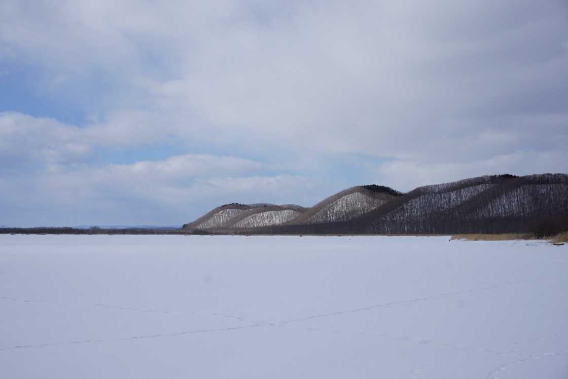 この辺りは小川が凍って溢れ、一面が氷の塊となっている