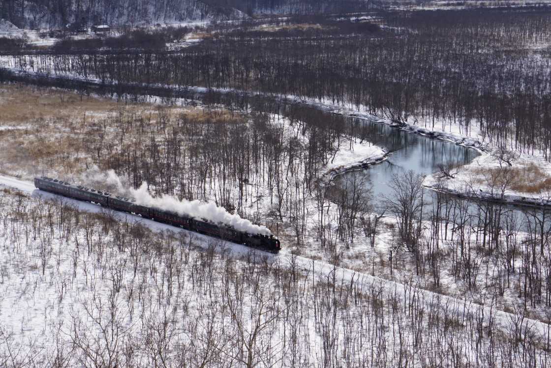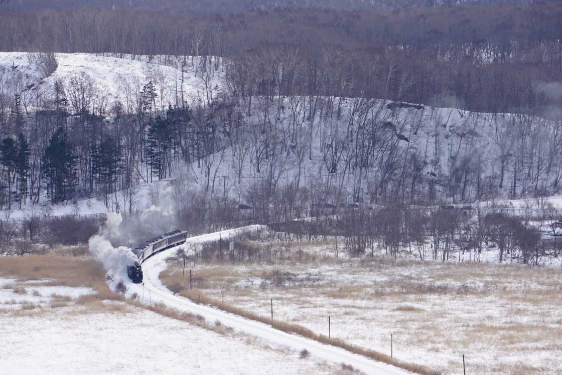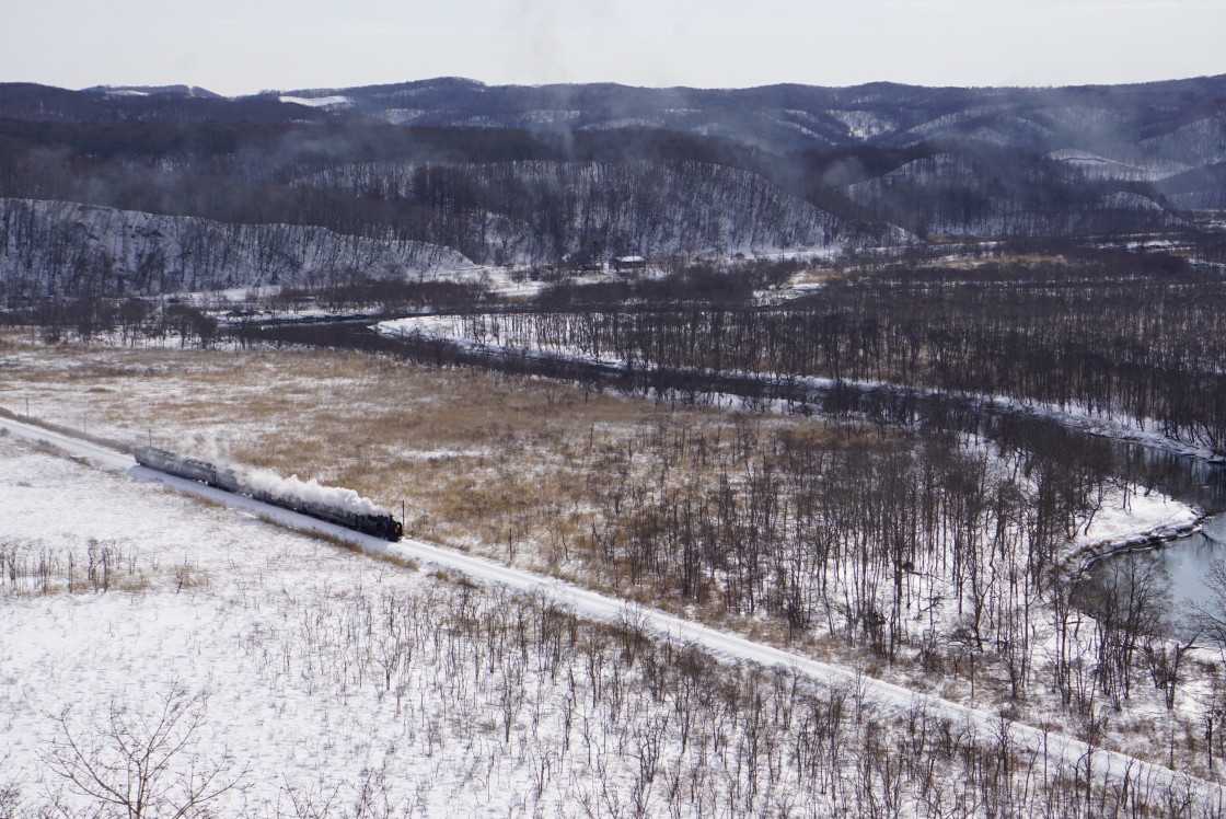 いつもおじさんが、細岡駅から走っているあたりを列車が走る
