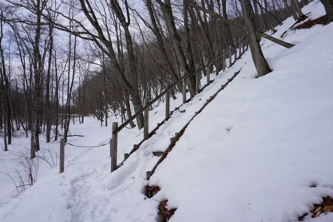 この先はスノーシューの踏み跡がけっこう固まっていて、長靴でもなんとか行けそうだ(時々ズボッとハマるが)