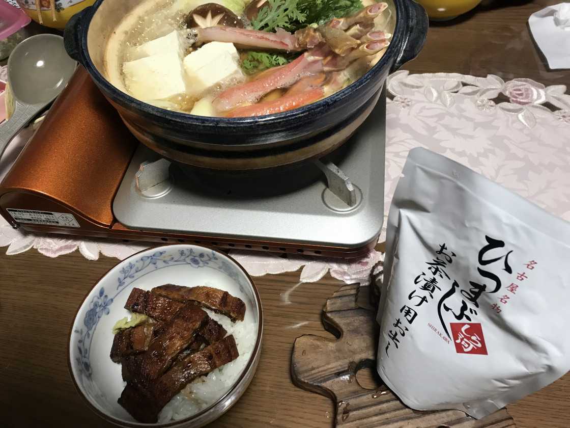 鍋は、写真用に見栄をはって、カニ鍋を奮発してみた・・