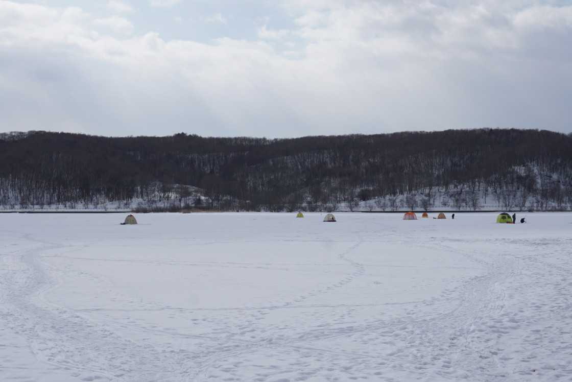 それほど多くはないが、ワカサギ釣りを楽しんでいるようだ