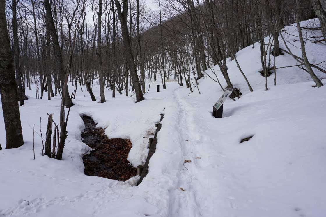 ところどころに湧き水が出ていて、凍っていないところがけっこうある