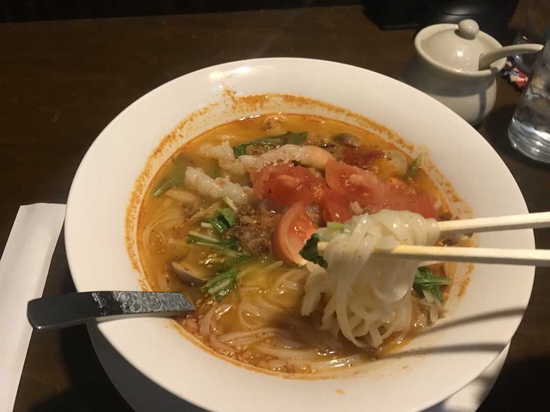 ベトナムフォーにしようか迷ったが、刺激的なトムヤムフォーにしてみる920円