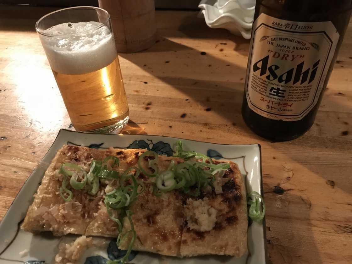 とりあえず瓶ビールとアゲ焼きをたのむ