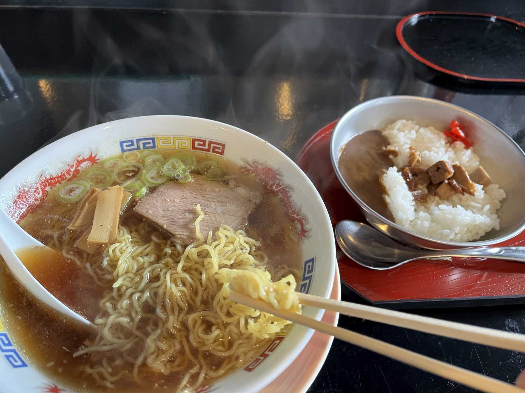 つい小カレーも頼んでしまったが、チャーシューが乗っていて、これもいい感じだった300円