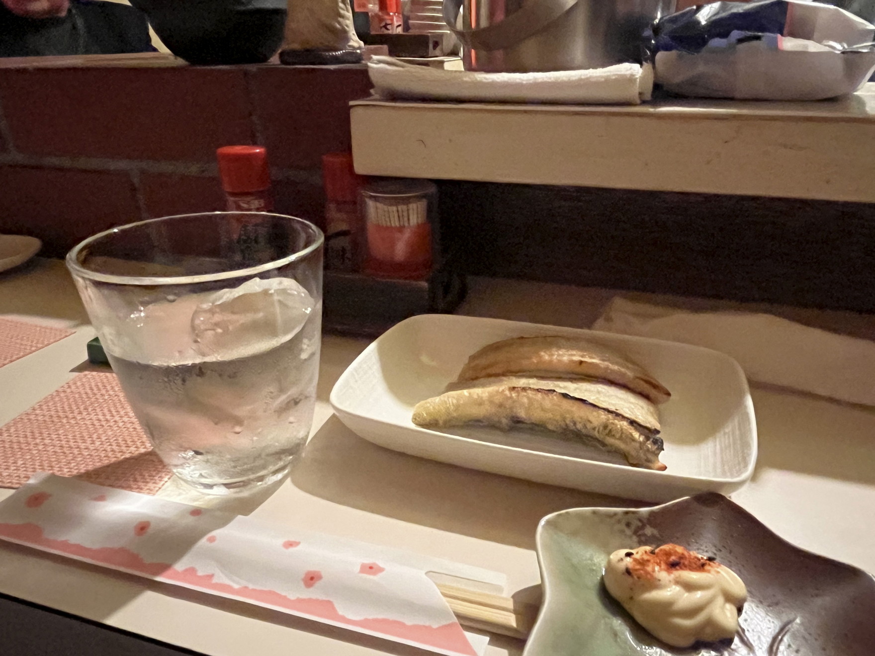 これ以外に焼き鳥などを何種類か頼んで、芋の水割りを一杯