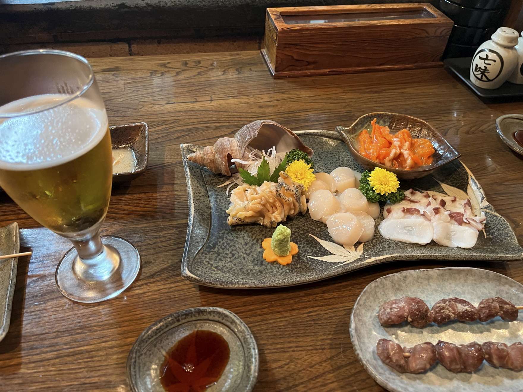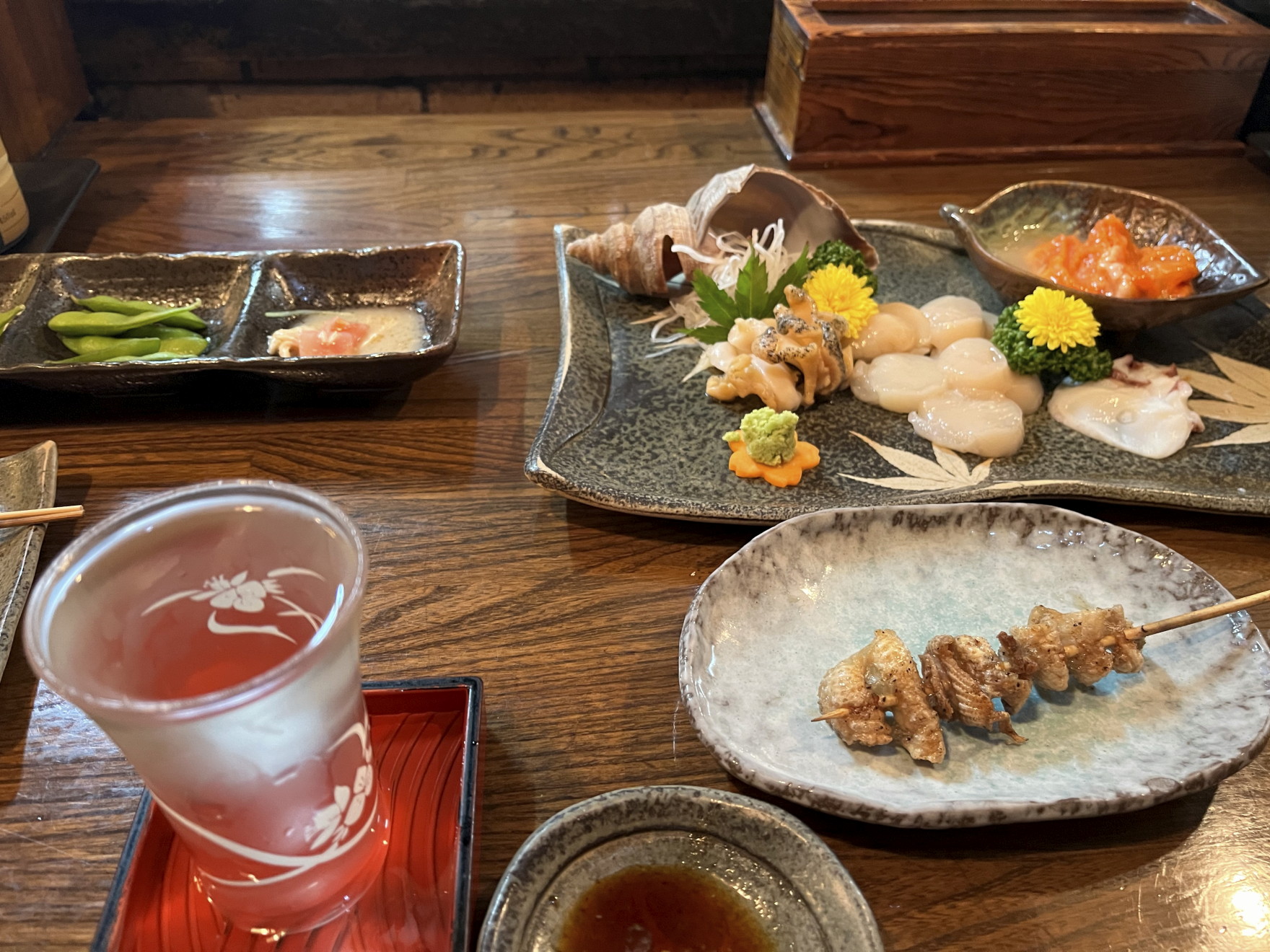 刺身が出てきたので、はやく日本酒に切り替えたいところだ