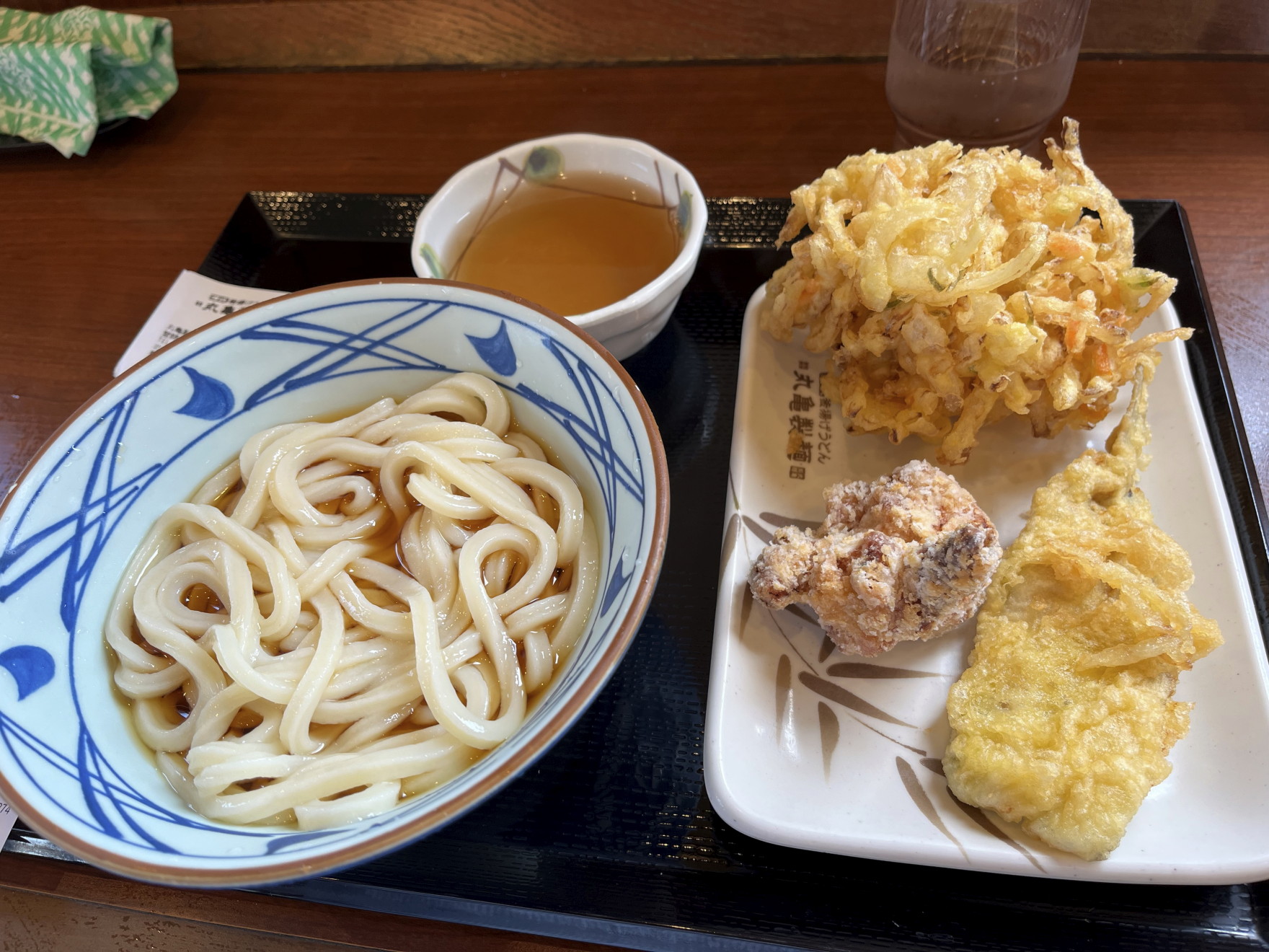 これはだいぶ前の丸亀製麵  舞茸のかき揚げと唐揚げ、アジ天 870円