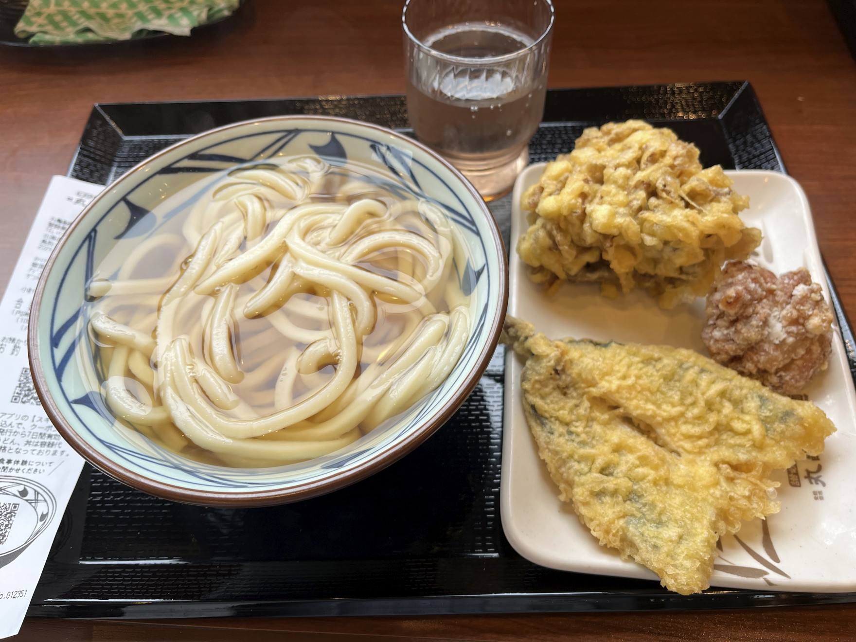 同じく丸亀製麵  ぶっかけと、野菜かき揚げ、イワシ天 850円くらい?