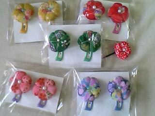 今日は、束の間のお休みです。妹夫婦が来るので、老体の姉はお休みです(笑)お陰で、ちまちまと作っていた髪飾り10セットが出来上がりました。丁度、ピンがなくて買い物に出ていた時に、地震!!!息子を一人置いて来たのがちょっと心配。(いつものことだけど!)何も落ちた物もなく、息子も無事でした。やっと落ち着いて仕上を!他にもパッチン留めで作った物もあるのですが、こちらはちょっと大きめの仕上りです。○○画像○○そろそろ、フリマも久しく出していないので、今夜あたり出品しようかと思ってます。アッ!明日はメンテナンスがあるんだ!早く夕食を終らせないと!!!頑張ろうっと!!!