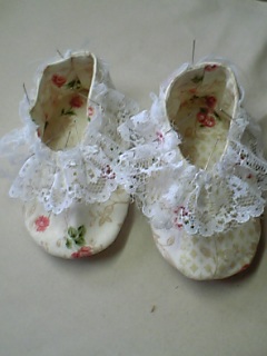手が落ちると言っても、自分の手がどうかしたと言う事ではないのです。洋裁などしていて、しばらくブランクがあると、どうしても感が鈍ったりして、今までのように縫う事が出来なくなる事を言うんですよ。知っていらっしゃる方は、ウンウンと頷いていらっしゃると思いますが(^^ゞここ一月あまり、ミシンの前に座る時間が激減してたため、やはり、手が落ちてました(笑)夕べも、ちょっとベビーシューズを作ろうと思い、裁断して縫い始めたら、縫うことに時間がかかること、かかる事!!!慣れると、小さい物だけに、アッと言う間に作れるのですが、夕べは完成させずしまい(>_