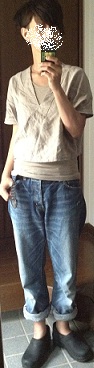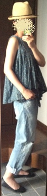 暑がりなもんで我慢できずノースリーブで失礼します。chimalaのジーパン SCAMPさんのセールで買いました。冬にラックスで試着済みだったのでサイズ感はだいたいわかってたし、ずっと欲しかったし、誕生日だったし、などなど自分に言い訳しながら買いました。(笑)私には高価でしたが履いてみたらやっぱりかっこがよくってテンションが上がります。膝のパックリ加工がラックスで試着したときは、どんどん破れが広がりそう。。。って躊躇したんですがこれは縫い止めがしてあり、これ以上は広がる心配は無さそうでよかった♪ちなみに正面はこんなん。chimalachimalachimala 売り切れてますが私が買ったやつです。