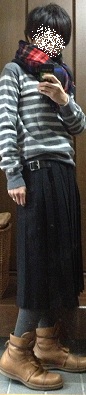 着るのも買うのも久しぶりなスカート。O’NEIL OF DUBLINのチェック柄が欲しいなぁと思っていたものの、なんか私が着ると浮く。。というか顔とスカートが合ってないんじゃないかとなかなか手を出せずにいました。でも着てるひとを見るとやっぱりいいなぁ~なんて思いまして、ネットで画像検索の毎日。 ←ひま人探してみると形も長さもいろいろあるのね~全体にプリーツが入ったのやら、後ろにプリーツ無しとか、前にプリーツ無しとか。。。それによってシルエットも違うのね。悩んだ末買ったのは、こちら。生地は学生服のスカートみたいで毛100%だけど毛玉とかにはならないような、ウールの割りにつるっとした生地感です。ピンも付属してました。でも生地に穴があくので、ぶすッとできないないんですけど、皆さんはどうしてるのかなぁ? 思い切ってぶすッとやればいいのかしら~MHLのボーダーニットにpunto。 なんか足でかい。ジョンブルのGジャンにレペットZIZI。 Gジャン着るのも何年ぶりかしら?チェック柄のも欲しいわ。これとか、 こちらは20%オフ。 これもいいわ~そのほかちょっと気になったもの。。。 これ黒やったら欲しい。 形が好みです。