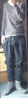 明るく写っちゃってますが、チャコール&ブラックです。KAPITALのサルエルヌーベルパンツ、履いててめちゃ楽ちんなので出番が多いです。 ちなみに私のはサイズ1です。 これもよさそう。ここんとこ黒が着たい気分なんですが、ワンコが来てからというもの掃除してもしても毛が落ちてます。なもんで、黒い服にワンコの毛が付いてしまって困りものです。コロコロが手放せません。^^;今日はこれから長男の参観です。5年生ともなるともう飽きちゃって、授業とか見てもつまんないんですけどね。授業参観の後は親子集会ってのがあって、体育館に集まって親子でゲームなんかやります。 動ける格好で来てくださいってことなので、これにしました。気楽な格好でしょ?ジャケットとかスカートとかで来る保護者は、少ないんです。ほとんど居ないかな?そろそろ出る準備して行ってきます。