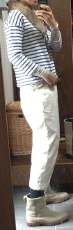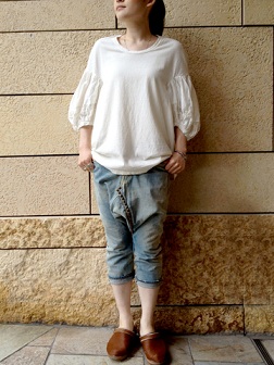 ひととおり家事を済ませて時間がぽっかり空くとダメですね~ついついパソコンの電源をポチリ。saleの文字が飛び込んできて目の毒です。セールじゃなくっても新着やら、再入荷ものやったり。どうしてもKAPITALのブッファンに目が行くんです。 レースのんやら、ラグランタイプやら、インディゴ染で袖が左右違ってるのやら、かわいすぎです。 白 いいねぇ。 こういうのも好きだな。kelen-ボーダーアンダーパンツTRAVAIL MANUEL*-フレンチリネンヘンリーチュニック今日はほんと蒸し暑い。クーラーはまだ我慢。雨が降ったり止んだり、そのたびに窓を閉めたり開けたり。蒸し暑くて本当は何も着たくないけど、だらしなさすぎるのも嫌やし、突然宅配便が届くかもしれないし・・・という感じのコーデです。(長っ) がに股っ載せるほどのものでは無いですね、すいません。