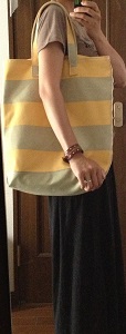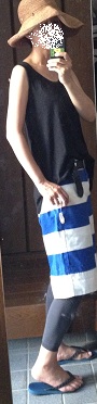 太ボーダー見たら、パッと目が行ってしまいます。これは去年どこかのイオン系SCで偶然通りかかったときにパッと目に飛び込んできました。白×青の爽やボーダーです。丸じゃないけどカルピスっぽい。パラスパレスのもので、セール価格でゲットしたやつ。こちらは、つい先日LUXEのセールでゲットしたコットンリネンのイージーパンツ。ボーダーはボーダーでも太いピッチのボーダーって好きです。なかなか太い幅のボーダーって見つからないなぁって、気に入ったのがあってもお値段が高かったり、形や素材が気に入らなかったり。上の2つはお気に入りのボーダー具合なのです。お気に入りと言えば、LUXEのボーダーのinに着てるタンクトップはかれこれ25年以上前のものなんです。私の中学、高校時代といえばDCブランド全盛期。たしか高校生のときに買ってもらったんだと思うんだけど・・・その頃の服はもちろん全部処分して残ってないのだけど、なぜかコレだけは捨てられなかったんですよ。何度もやってきた処分するための洋服整理、そのたびにコレは置いておこうかと生き残ってきました。ニットじゃない綿100%なので伸び縮みも変形も無いし、細からず太からずの身幅で体のラインを拾わない。 これからまた使えそうです。やっぱ捨てなくて正解やった。色褪せがあるので自分で染めてみようかな。■□■□■ 太ボーダーあれこれ □■□■□ 目がチカチカしますな。