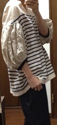 ブラウスを縫いました。生地がまだ硬くてバリッとしてますが、風が抜けて涼しい~んですよ。もっとクッタリしてほしいのでガンガン着てガンガン洗ってみよう。着たらこんな感じ。パターンは、Maille.さんの「サイドフレアープルオーバー」。縫うのすごく簡単だったので、このパターンでまた縫おう。これ欲しいなぁ。