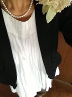 私にしてはめずらしく華奢なネックレスを買いました。神戸Atelier d'antanのアクセサリーブランドJOE SCHMOEのネックレスです。華奢な鎖は、雑な私にはぶっち切ってしまいそうな繊細さでドキドキです。でもお値段もそんなに高くないしシンプルなので普段使いにちょうど良さそうです。 キラキラしすぎないところが気に入ってます。もうひとつめずらしく柄パンも買いました。DOORSのやつです。 柄パン(言い方がすでにオバハンですが^^;)ってたくさん出てますけど、へたしたらオバハン度がアップする危険をはらんでるので手にも取れなかったんですけどコレは試着してみたら『いいかなぁ~』と思いまして。ノースリーブはこちらVlas Blomm襟元がくしゅくしゅっとなって甘い印象ですが、黒は可愛すぎず使えます。