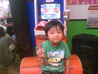 土曜は天気がいいのに日曜は天気が悪く気分がすっきりしないkuwamushiです 8月に連休があるので土曜の休みが無く日曜に海に行こうかと思ってるんですがずっと雨に当たり全然いけません平日も最高な日があるんですがさすがに休みは・・・トレマセン・・・ もう諦めるしかないでしょうか?普段は悪い事せずいい子にしているのに本日は大会も無く朝はKYONとラジオ体操から始まりKYONの自転車探し夕方はちょっとドラクエレベ上げYUママはコインゲーム・・・出しすぎて貯金してきました 土曜は恐竜大会がありました! kuwamushiはYUママとペアで参加 ここまでついている運はどこまで??? 1回戦はシード!2回戦! 最初YUママが戦い相手の1頭を倒し相手2頭目登場! が・・・あっさり倒され相手体力満タン状態でkuwamushi交代! 落ち着いて戦い勝利! 準決勝!YUママ1頭で2頭倒し勝利! 決勝戦!YUママ先に倒されkuwamushi登場 あいこ1回あるが後はジャンケンに勝ち続け相手2頭目! いい勝負!なんですがここで気になる事が kuwamushiがジャンケンで負けるたびに相手のママさんの声が・・・「よし!」という声が・・・かなりのプレッシャー・・・完全なるアウェー 決勝は決まりの一手同士! 最後はあいこでkuwamushiの恐竜の体力がつき・・・ 準優勝・・・でした でも満足でした KYONも参加していてリョウガとのペア! 1回戦シードで2回戦はリョウガ先に倒れるがKYONは落ち着いて戦い勝利 準決勝!kuwamushi作戦によりリョウガの恐竜を変更! 相手の1頭目リョウガが倒し2頭目の体力を半分まで削るという猛頑張りをみせてKYONとバトンタッチでKYONジャンケンに負けずに勝利! 決勝!リョウガ相手1頭目を倒すが相手2頭目あいこ1回分減らしてKYONにタッチ! KYONジャンケンにジャンケンに勝って負けて交互に・・・ 相手レッドゾーンになり変身最後一手勝負! 最後はあいこで!!!!!! リョウガ&KYONペア優勝!してしまいました! 途中リョウガのママさん子供達がジャンケンに勝つたびに掛け声が!!! この調子でDキッズもゲットして欲しい物です ・ ・ ・ ここで皆さん気付きでしょうか? そうです!決勝はkuwamushi&YUママペアとリョウガ&KYONペアの決勝戦でした kuwamushi我が子のKYONの負けてしまったのです しかも前の試合でアドバイスした自分の恐竜に・・・かなりの凹み・・・ それだけ2人が強かったのですね! 今度は我が子達にリベンジを! 最後に先週の大会でKYONの名前を間違って優勝カードが持って帰ってくることが出来ませんでしたが無事届きました! これで正式に4枚揃いました 少し家族で溜まっている恐竜王を送ることができます!