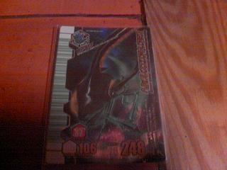 昨日は早めのZZZしました^^それは楽しみにしていた本日最後?なろうかとしているムシキング大会がありました参加者は少なかったのですがもうわくわくkuwamushiだけどあの彼を使う為に!!!!! あともう1つの隠し玉を使う為に(しんちゃんパパさんお返事出来なくてすいません)kuwamushiはシードで1試合目にあの方が登場!しかも家族対決その方はこれを! ついに! 地元初登場! それは! 石頭さんはんぞうさん産改造コーカサス!!!!!! 順調に勝ってましたが1打を浴び一気に逆転負け・・・ 2回戦!kuwamushiはもちろんムシ博士産エクア!後はあの幻のカードシャイニングリッキーとゴマダレと西洋!ジャンケンがかみ合うのとゴマダレが助けにきて最後はリッキーの必殺が決まり勝利3回戦!1手目からゴマダレ炸裂で後はリッキーの必殺!とガンガンあいこで勝ちリッキーの必殺で勝利!準決勝!夫婦対決!で出し手もよく知られているのでオールチョキ!2回目でゴマダレを出しストレート勝ち!なんと決勝!対戦はYUUNAOさんのマナ娘のユウちゃん!エクアで行くか隠し玉の赤足で行くか・・・エクアで行く事にしてジャンケンで負け・あいこ・負け・ゴマダレ・負け・・・相手はもう逃げに出ると思ったんですが・・・そこまで・・・結果は 優勝はユウちゃん!!!!!! 今のムシキングの準優勝はケースもなし・・・ 悲しい・・・ そして・・・ 悔しいです!!!!!!!!!!!!!!!!!!!!!明日はプチ遠征で恐竜キング大会!気持ちを入れ替えて頑張ります! ※一部アップに間違いがあり訂正をさせて頂きました間違いに対してご迷惑お掛けした方々様申し訳ありませんでしたm(_ _)m