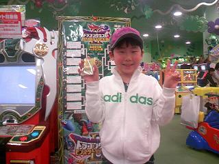 午前中冬に向けて自分の車に付いているエアロを外して疲れたkuwamushiです今日は大会も無くお昼から買い物&コインゲームです!でこれからお仕事・・・ さて昨日の恐竜大会でストレスが発散出来たかと言うと・・・最初はペア戦でちょいとした事があり不参加のつもりでいたんですが牙舞さん のおかげで出れるようになったんですが1回戦、牙舞さん とのペアとあたり見事に撃沈・・・ ここでの優勝は! リュウト、ナオミさんペア!ママさん強し! kuwamushi出れた事にストレスがちょっと発散が負けてストレスが・・・+-ゼロ 続いてトリオ!シクレ、DT、JA、SP竜なしの大会!kuwamushi、激烈石頭さん、石頭さん御子さんユウヤトリオ!この日調子が悪いkuwamushi、激烈石頭さん・・・1回戦!順番は調子のいいユウヤ続いて石頭さんでいつも頼りないkuwamushiやはり調子のいいユウヤと石頭さんで相手1頭半近くでkuwamushiの出番・・・ストレスの溜まったこの日のkuwamushiはおかしかった!かなりのプレッシャーはありましたがストレスの溜まりすぎで単純に出しジャンケンがかみ合い相手の2頭目を倒し3頭目登場!kuwamushi!イエローに近いグリーンゲージからのスタートでしたが何とか頑張り勝利2回戦!順番変えずにいきユウヤ1頭を倒し2頭目の体力半分近くまで削り石頭さん登場!・・・・・・石頭さん相手体力ちょっと削りkuwamushi登場?え?もう?自分で言ってただけにこの日は調子が・・・石頭さん・・・その分はユウヤと頼りないkuwamushiでカバー!話戻って2頭目をkuwamushiが倒し相手3頭目!kuwamushiグリーンゲージ!この対戦あいこが多く相手にはあいこアタックが付いていて苦戦!ジャンケンで勝つがあいこで追いつかれいい分になってしまいお互い全爪状態でkuwamushiが制して勝利!いよいよ決勝戦!相手は我が子のKYON、そして石頭さんの御子さん弟のタカヤ、とムシキング初代北海道GC王リュウヤ!ここ最近恐竜、ドラクエ大会で準優勝続きのユウヤ・・・絶対優勝したいと・・・順番と恐竜を変え石頭さんさいしょでKYONと対戦!ここでkuwamushi家、石頭さん家優勝カードゲット確定試合はお互いいい分(石頭さん属性勝ち)だったんですが石頭さんKYONに必殺喰らう・・・がKYONまさかの必殺コンボミス体力少し残りあいこでKYONを倒しリュウヤ登場!石頭さん倒されkuwamushi登場!ストレス解消ぎみのkuwamushiなんだか好調!ジャンケンで負けなくリュウヤ倒しボスキャラタカヤの登場!体力の減り無くタカヤとのゼロスタートこの大会kuwamushiいままでにない戦いと頑張りと粘り!タカヤを倒し・・・ 優勝!遠慮がちに雄たけび!!!と思った瞬間後で出番を待ち構えていたユウヤがkuwamushiより先に雄たけびを雄たけびできず・・・待ちに待っていた優勝が出来大喜びのユウヤ!ホッとする石頭さん!この日優勝記念にお寿司を食べに行く石頭さん家でしたがkuwamushiお呼ばれなし・・・この日の成績! 優勝×1 準優勝×1!この大会でKYONはかなり頑張ってましためったに使わない恐竜を使って好感触運が戻ってきたのでしょうか?この運が来月の待つまで続きますように!