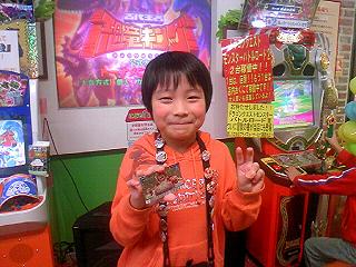 超おいしいお酒を飲みちょっと眠たいkuwamushiです 昨日から突然の仕事で業者さんだけではおわらないので今日までkuwamushiも手伝っていました 午前中に恐竜キングの大会があったのですが参加できず・・・ママさんとKYOUだけの参加!土曜午前中だけに人数が少なかったみたいです人数といえば来月に恐竜大会と思いプチ遠征でお世話になっていた〇別の西〇さんにお願いしたのですが・・・今オレンジ君に入っている3紀のカードが無くなり次第撤去と言う・・・地元では全然人気が無く売り上げが・・・仕方ありません・・・こちらから行っても・・・ 話戻って1回戦ママさんは負けでKYONは石頭さんと対戦で勝ったものの2回戦敗退だったみたいです午後からは最初で最後の超恐竜王がありましたが店舗サイドの案で小学生以下の大会でしたもちろん人数は若干少なかったですが盛り上がりは!なんせあの幻のGOLDのカード!しかもこの日限定!子供達の大会なのになぜか燃えているのは親御さん達kuwamushiもKYONにカードゲットのおねだり・・・1回戦!相手は大きい大会に参加している御子さんでどういう戦い方をするのか未知の世界KYONカード選択!最初はやはり相手の出し手のパターン苦戦してペースを崩されそのままズルズルと・・・お互い2頭目もそのまま行き最後にKYOUが勝ち勝利もうドキドキ2回戦!石頭さんの御子さんのタカ君との対決!1回戦の戦いでうまくいかずカードチェンジ!互角の戦いでしたがKYONの1手で体力がかなりの回復タカ君が先に倒れ2頭目ですがKYONのJAゲージが満タンになり変身して勝利!準決勝!避けれるものなら避けたい子供の1人強豪のハルトとの対戦!2頭目だけを替えるといいカードを持っていざ対決KYONのジャンケンが噛み合い勝っていたんですが回復に気を取られ体力は戻ったけど変身できず・・・ハルト2頭目登場!あいこが続きほぼ同時に変身・・・制したのはKYON!!!勝利!カードのゲットは確定!残るはGOLD?SILVER? 決勝戦!相手はYUUNAOさんの所のユウちゃん!ハルトに続き強豪!KYONにカードの変更を伝えましたがまだ使ってもいないのにまた2頭目を変更???必殺を喰らうがジャンケンに勝って体力が上がった瞬間ユウちゃんデス発動口から心臓が出そうなkuwamushi!石頭さんの体で目を覆いもう!!!!!と思った瞬間・・・KYONがじゃんけんに勝ちデス喰らわず ユウちゃん2頭目登場でKYON勝ち! ユウちゃんダイノ発動! その瞬間KYON変身! ジャンケンで勝つがダイノでユウちゃん無傷! 次のジャンケン! KYONがジャンケンに勝ち・・・ 幻のGOLDカードをゲットできました午前中の大会のことがあったので完全にゲット出来ないと思っていたので・・・感動で最近すぐにウルウルくるkuwamushi! 二人のカードは輝いていましたここで石頭さんKYONにジョーク!「KYON!女の子の肩に手をまわすのは10年早い!!!」子供の父親に様でした・・・本当に地元最初で最後の超恐竜王をゲットできて良かったですこのカードをスキャンできるのはいつに・・・