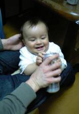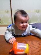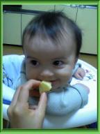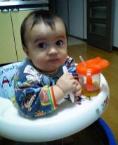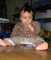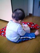 今日もつかまり立ち・・・と言っても、自分でつかまって立ったわけじゃなくって、つかまらせられたんだけど~(^^ヾでもソファーの先になんだか欲しい物(ただの広告紙!)を発見しちゃって、どうしてもそれを取りたくって・・・・初めての伝い歩きをしちゃった~~!!!祝でもね、二歩だけでこけちゃったので、これは伝い歩きとは言わないのかもね~~~~(p;_;q)赤ちゃんせんべいを食べる僕♪↓↓↓動きがおじいさんのように遅くって、食べる姿を見たみんなに笑われます(^^*)本当に本当にスローだよぉ~~~~♪こんなにゆっくり食べてるのに、たまにのどにつっかかるのはナゼ?汗