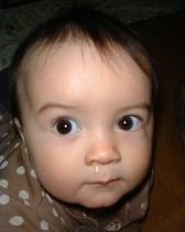 今日はパパの上司であり、ママの元上司でもあるお兄さんに少しだけ会ってきたよ~♪でも僕は緊張して、またまた・・・この顔で→「威嚇!!!」してしまったのです~~^^;お兄さんとママは二年ぶりの再会で懐かしく立ち話をしてる中、僕はずっとこの顔で、お兄さんを見つめていました~(笑)周りのみんなは僕の顔を見て笑っていたよ^^;そしてまた「パパにそっくり!ミニチュアじゃん!」と言われたよ~♪僕は途中で寝てしまったけど、今度会うときは笑顔で会えますように・・・☆ミ家に帰ってそのまま3時間も爆睡。いつもはお昼1時間しかお昼寝しない僕が~!そして、寝起きにりんごをちょっとかじってみた☆おいしい♪と調子にのっていたら、またちょっと喉にひっかかりそうになった(@_@)危ない危ない!!そうそう、今まではね、「つかまらせ立ち(スナックのママ風♪)」だったのが、今日初めて自分ひとりで「つかまり立ち!」しちゃったよ~~☆祝!でもよく考えたらうちの中につかまれるような場所Rテーブルって殆どないんだよね~~^^;